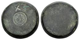 Weight for 10 castellanos according to the Ordinance of 1488. Gothic C below a castle and X above. (Braña, Numisma 260 - not cited). 30 mm. 45.63 g. Bronze. Very rare, with few specimens known. Choice VF. Est...600,00.