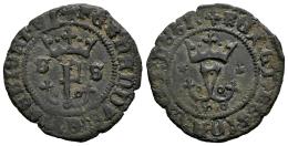 Catholic Kings (1474-1504). Blanca. Sevilla. (Cal-46 var.). (Bautista-Unlisted). Anv.: + FERNANDVS : ET : hELISABET. F crowned, between by small S-S, below three roundels. Rev.: + REX : ET : REGINA : CAST : DEGI : . Y crowned, between by stars, below 4 roundels. Ae. 1,67 g. VF. Est...30,00.