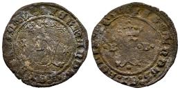 Catholic Kings (1474-1504). 2 maravedis. Burgos. Struck for Santo Domingo. (Cal-69). Anv.: FY crowned between ermines. + FERNANDVS : ET : HELISABET : . Rev.: Crowned F between B-B acoted with pellets. + FERNANDVS : ET : HELISABET : . Ae. 3,17 g. Surface rust. Very rare. Choice F. Est...350,00.