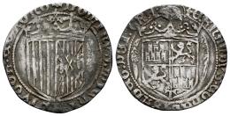 Catholic Kings (1474-1504). 1 real. Toledo. (Cal-449). (Bautista-2457). Ag. 2,50 g. Before to the Pragmática. T below obverse shield. Wavy flan. Rare. VF. Est...300,00.