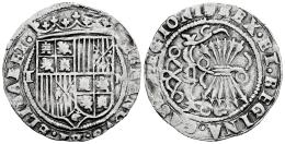 Catholic Kings (1474-1504). 1 real. Toledo. (Cal-468). Anv.: FERNANDVS ⠄ ET ⠄ ELISABET ⠄ . Rev.: ✠ REX ⠄ ET ⠄ REGINA ⠄ CAST ⠄ LEGIONI. Ag. 3,37 g. Shield between T - M. VF. Est...100,00.