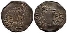 Charles-Joanna (1504-1555). 4 maravedis. ND (ca. 1542). Santo Domingo. F. (Cal-35). Ae. 4,03 g. Value IIII. Upper bar of the F not struck. S and P double struck. Large flan with most of the legends visible and no traces of oxidation. Very good specimen for this type. Very scarce in this condition. Choice VF. Est...200,00.