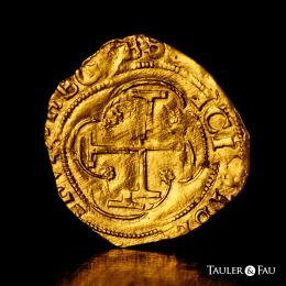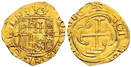 Charles-Joanna (1504-1555). 1 escudo. ND (ca. 1556). Granada. R. (Cal-182). Au. 3,21 g. Open R assayer, resembles a K. Slight double striking on reverse. Nice color. Rare. XF. Est...1500,00.