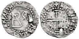 Philip II (1556-1598). 1/2 real. ND (1574-1576). Lima. P-R. (Cal-135). Ag. 1,58 g. Monogram between P-R. Puncture. Scarce. Choice VF. Est...150,00.