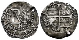 Philip II (1556-1598). 1/2 real. ND (1578-1595). Potosi. B. (Cal-143). Ag. 1,50 g. Assayer below the monogram. Holed. Wavy flan but sharp details. Scarce. Choice VF. Est...100,00.