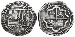 Philip II (1556-1598). 2 reales. ND (1577-1588). Lima. D (Diego de la Torre). (Cal-341). Ag. 6,13 g. Choice full shield and cross, much legend and crown, full P/II and oD/*. Rare. VF. Est...300,00.
