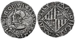 Philip II (1556-1598). 2 reales. ND. Mallorca. (Cal-346). (Cru C.G-4252b). Anv.: + FILPVS ✤ REX ✤ ARAGONV3. Rev.: + MAIORICARVM ✤ CATILICVS. Ag. 4,83 g. Without value and without assayer. Flan crack and scratches. Very rare. VF. Est...700,00.