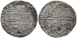 Philip II (1556-1598). 4 reales. ND (ca. 1588). Sevilla. (Cal-576). Ag. 13,60 g. Fleur de lis between shield and crown. "Square d" assayer on reverse. Slight rust. Slight patina. Scarce. Choice VF. Est...300,00.