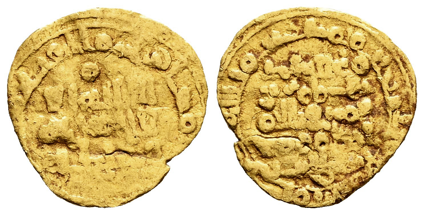 Hammudid Caliphate. Yahya Ibn Alí Al-Mutali (Hammudids). 1/3 Dinar. xx6 AH?. Madinat Sabta (Ceuta). Taifa of Málaga. (Vives-784). (Ariza-Ya11.15). (Prieto-85n). Au. 0,97 g. Planchet crack. Very rare. VF. Est...400,00.