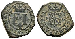Philip III (1598-1621). 4 cornados. 1621. Pamplona. (Cal-80). (Ros-4.4.33/1). Anv.: PHS D·G · REX · NAVAR. FI between pellets. Rev.: INSIG · NAVARA · 1621 ·. Ae. 4,37 g. A good dample with full legends. Ex Tauler&Fau 86, Álvarez de Toledo Collection (06/06/2021), lot 1119. Choice VF. Est...85,00.