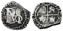 Philip III (1598-1621). 1/2 real. ND (1603-1612). Potosi. R. (Cal-407). Ag. 1,52 g. P/B to the left of the monogram. Rare . Choice VF. Est...200,00.