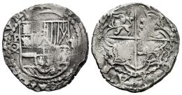 Philip III (1598-1621). 2 reales. ND (1612-1616). Potosi. Q. (Cal-627). Ag. 5,59 g. Dot inside Q assayer. Almost VF. Est...90,00.