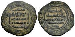 Kingdom of Taifas. Abbad ibn Muhammad, Al-Mutadid (Abbadids). Dirham. 44¿9? AH. Al-Andalus. Taifa of Sevilla. (Vives-Unlisted). (Prieto-Unlisted). Bi. 2,66 g. The central legend of the AI ​​decorated with two spears. Reference works do not mention this year. Very rare. VF. Est...80,00.