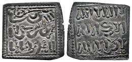 Almohads. Anonymous. Millares. 13th century. Sabta (Ceuta). (Album-498). (Hohertz-653). (Medina-201bis). Ag. 0,92 g. Christian imitation of the Almohad Dirham, in the name of Al-Mahdi.. Original Patina. Choice VF. Est...80,00.