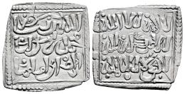 Almohads. Millares. 13th century. (Medina-201 bis). Ag. 1,34 g. Christian imitation of the Almohad Dirham, in the name of Al-Mahdi.. Almost XF. Est...45,00.