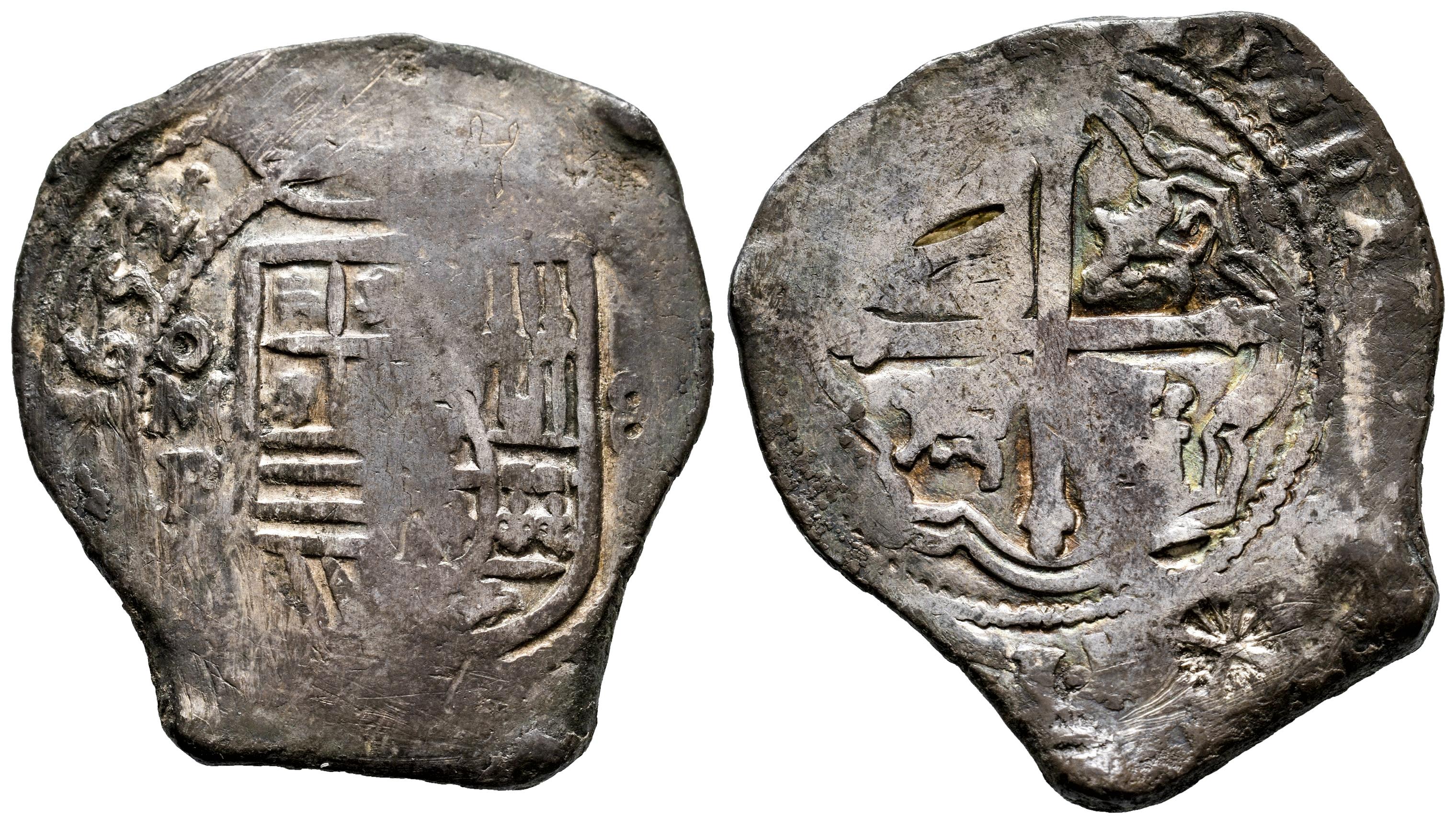 Philip IV (1621-1665). 8 reales. 1652. Mexico. P. (Cal-1354 var). Ag. 26,63 g. Unattributed cross-like countermark with two rays in each corner of the cross. Interesting c/m of oriental origin on rare host. Light oxidation cleaned. Toned. Choice F. Est...750,00.