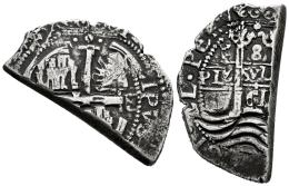 Philip IV (1621-1665). 8 reales. 1661. Potosi. E. (Cal-1525 var). Ag. 13,56 g. Clipped to circulate as 4 reales. Double date and assayer. Rare. Choice VF. Est...300,00.