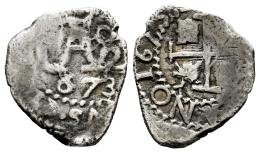 Charles II (1665-1700). 1/2 real. 1673. Potosi. (Cal-162). Ag. 1,56 g. Double date. Scarce. Almost VF. Est...120,00.