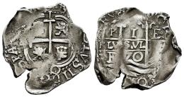Charles II (1665-1700). 1 real. 1670. Potosi. E. (Cal-253). Ag. 2,99 g. Double assayer. Part of the king’s name visible. Broad flan with some weak areas. Scarce in this condition. Choice VF. Est...120,00.