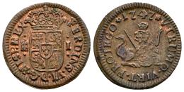 Ferdinand VI (1746-1759). 1 maravedi. 1747. Segovia. (Cal-19). Ae. 0,99 g. Scarce in this grade. AU. Est...60,00.