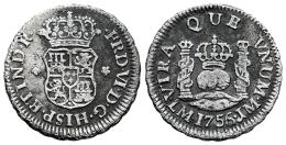 Ferdinand VI (1746-1759). 1/2 real. 1756/5. Lima. JM. (Cal-57). Ag. 1,54 g. Clear overdate. Scarce. VF. Est...90,00.