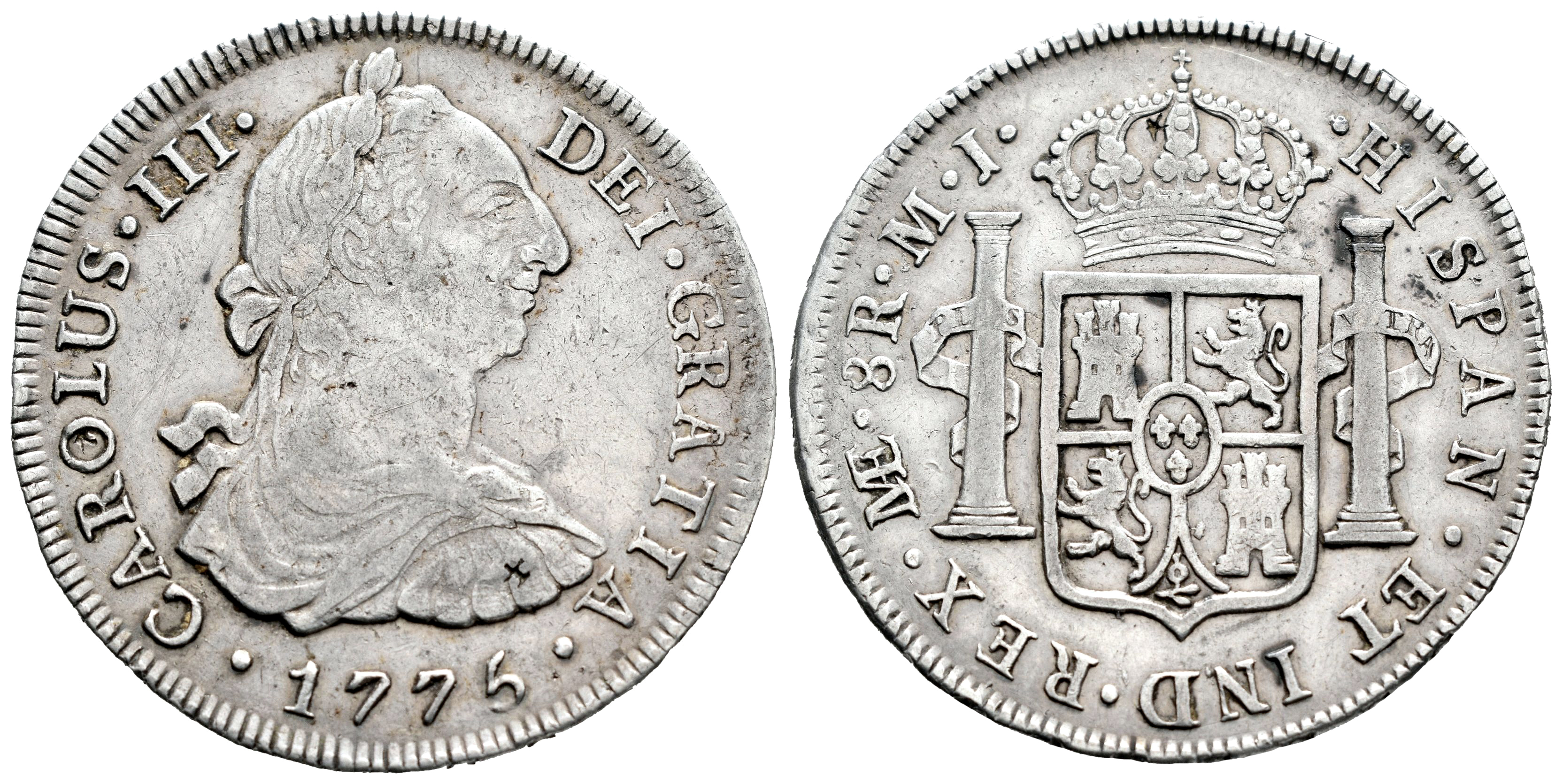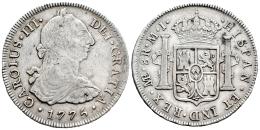 Charles III (1759-1788). 8 reales. 1775. Lima. MJ. (Cal-1041). Ag. 26,81 g. Small chopmarks. VF. Est...150,00.
