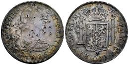 Charles III (1759-1788). 8 reales. 1776. Lima. MJ. (Cal-1042 var). Ag. 26,76 g. Chopmarks. Lovely old cabinet tone with some iridiscent hues. Scarce in this condition. Almost XF. Est...300,00.