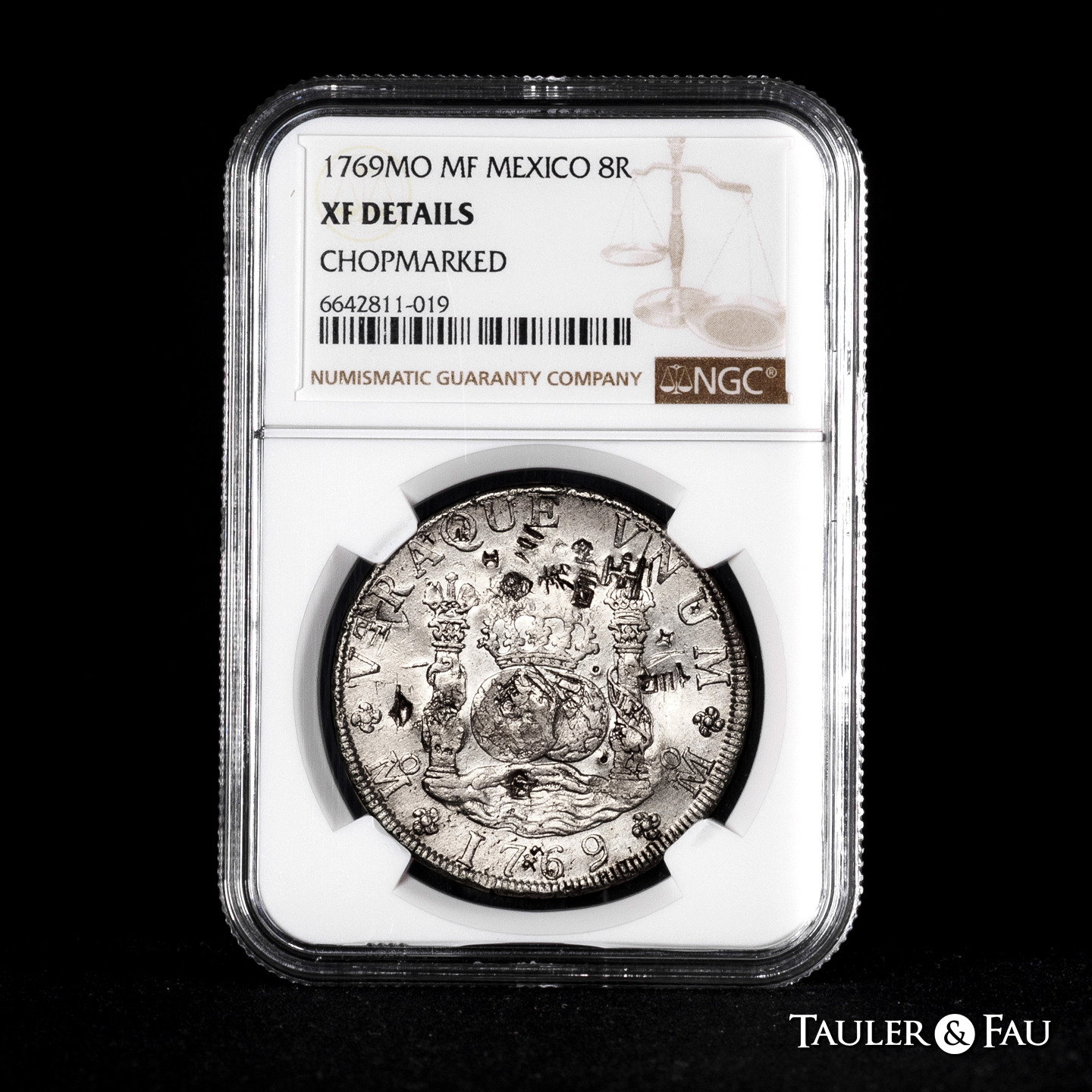 Charles III (1759-1788). 8 reales. 1769. Mexico. MF. (Cal-1095). Ag. Light tone and minor traces of luster. Slabbed by NGC as XF Details, Chopmarked. Est...500,00.