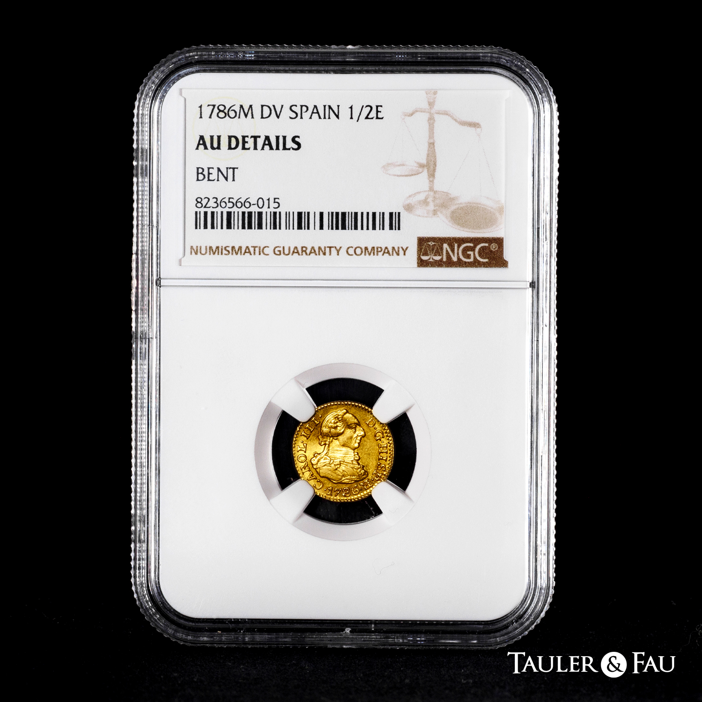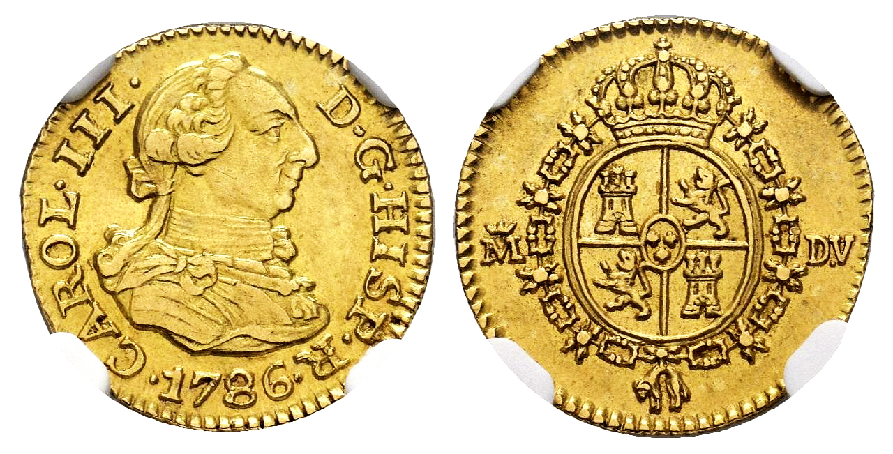 Charles III (1759-1788). 1/2 escudo. 1786. Madrid. DV. (Cal-1280). Au. Traces of luster. Slabbed by NGC as AU Details, Bent. Est...250,00.