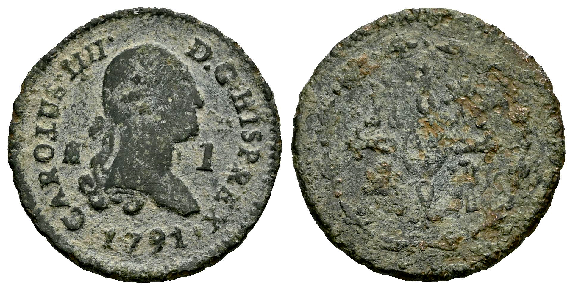 Charles IV (1788-1808). 1 maravedi. 1791. Segovia. (Cal-20). Ae. 1,17 g. Rust. Scarce. Choice F. Est...30,00.