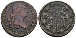 Charles IV (1788-1808). 4 maravedis. 1804. Segovia. (Cal-58). Ae. 5,51 g. Cleaned rust. Almost VF. Est...25,00.