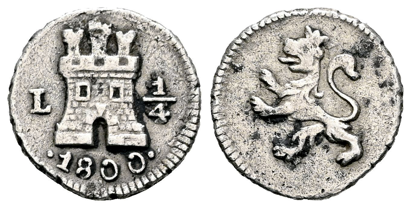 Charles IV (1788-1808). 1/4 real. 1800. Lima. (Cal-111). Ag. 0,78 g. VF. Est...100,00.