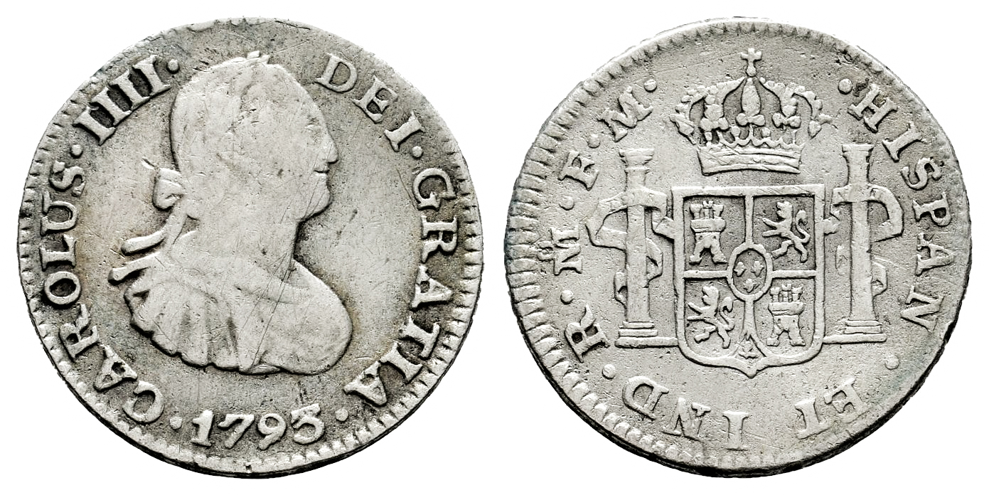 Charles IV (1788-1808). 1/2 real. 1793. Mexico. FM. (Cal-275). Ag. 1,62 g. Choice F. Est...20,00.