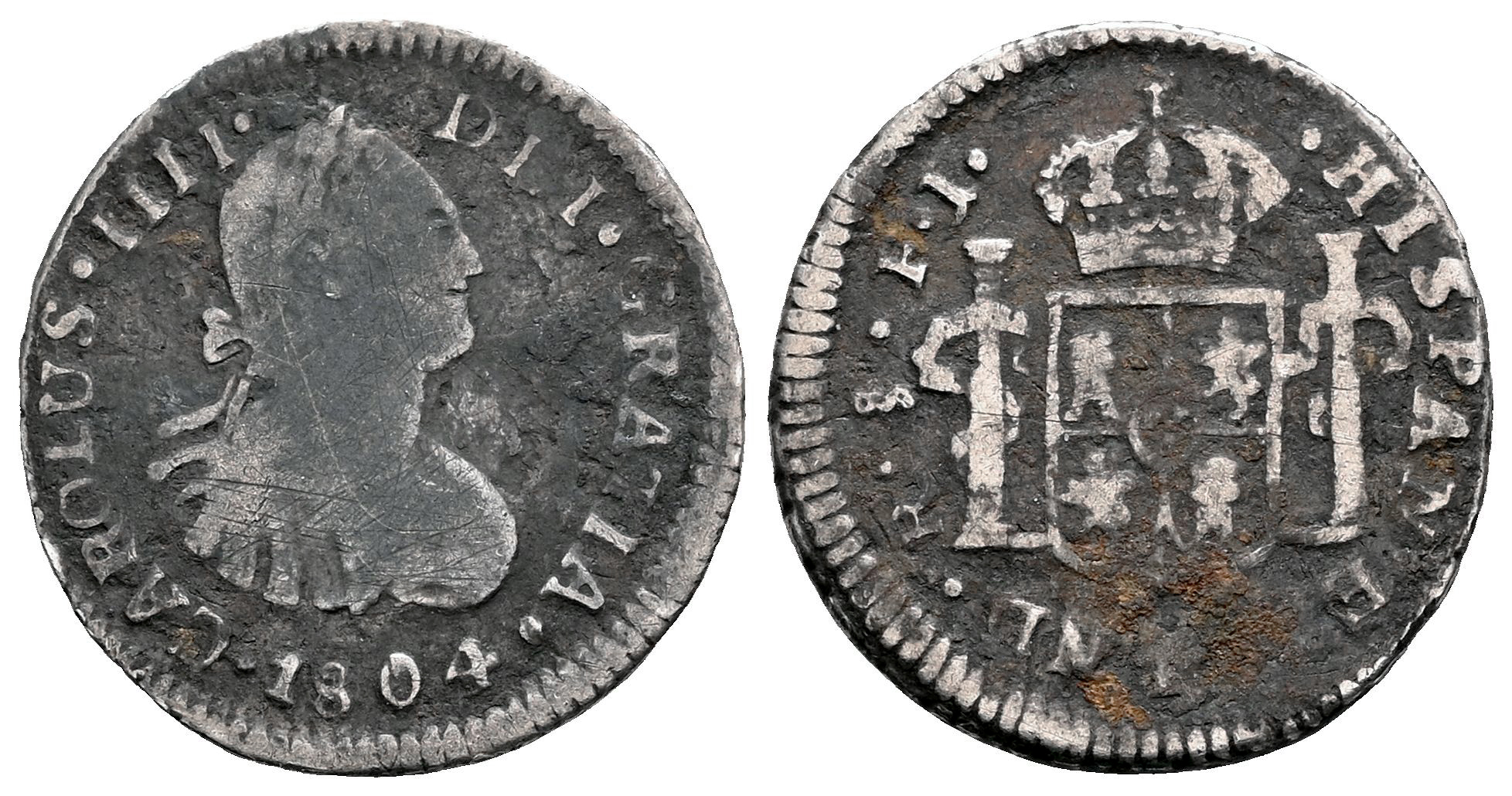 Charles IV (1788-1808). 1/2 real. 1804. Santiago. FJ. (Cal-352). Ag. 1,64 g. Scarce. F. Est...50,00.