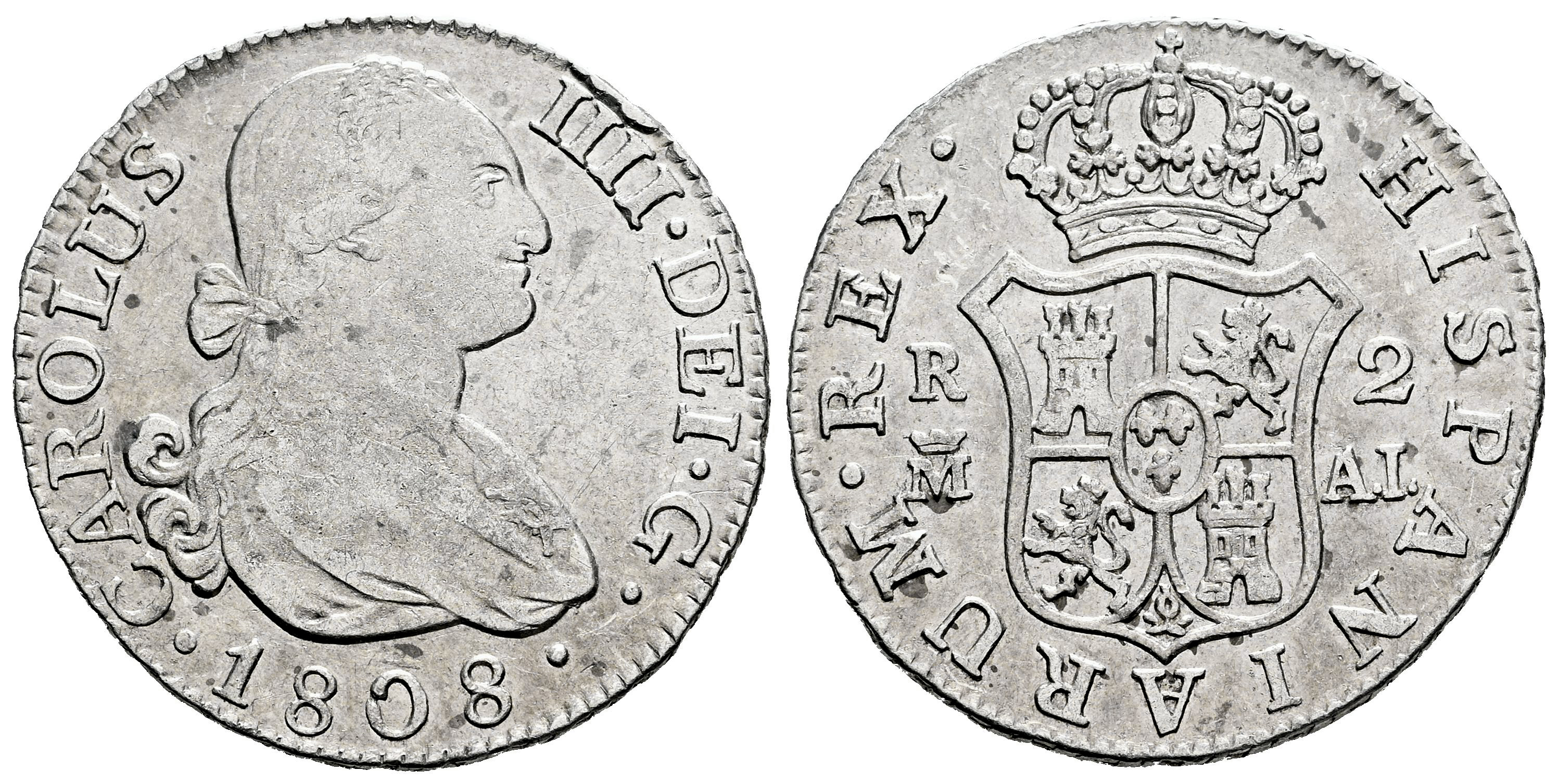 Charles IV (1788-1808). 2 reales. 1808. Madrid. AI. (Cal-619). Ag. 5,79 g. Almost VF/VF. Est...50,00.