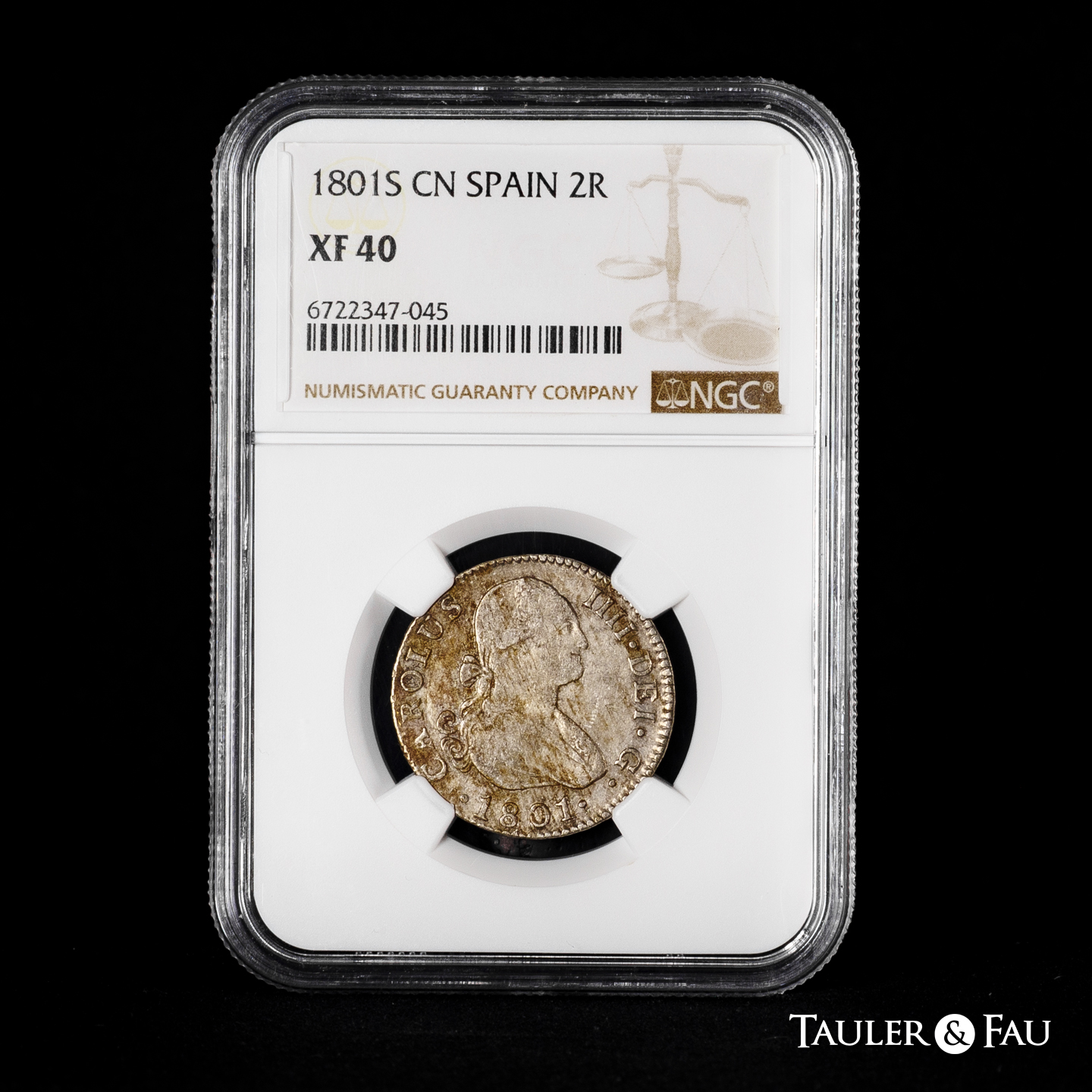 Charles IV (1788-1808). 2 reales. 1801. Sevilla. CN. (Cal-722). Ag. Slabbed by NGC as XF 40. Est...75,00.