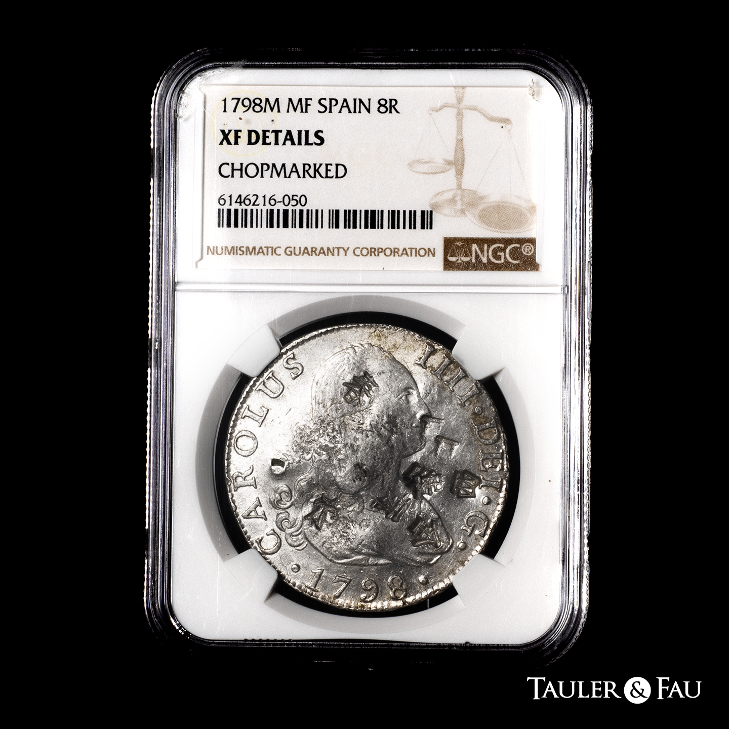 Charles IV (1788-1808). 8 reales. 1798. Madrid. MF. (Cal-933 var). Ag. Chopmarked. Slabbed by NGC as XF DETAILS, CHOPMARKED. Rare. Est...500,00.