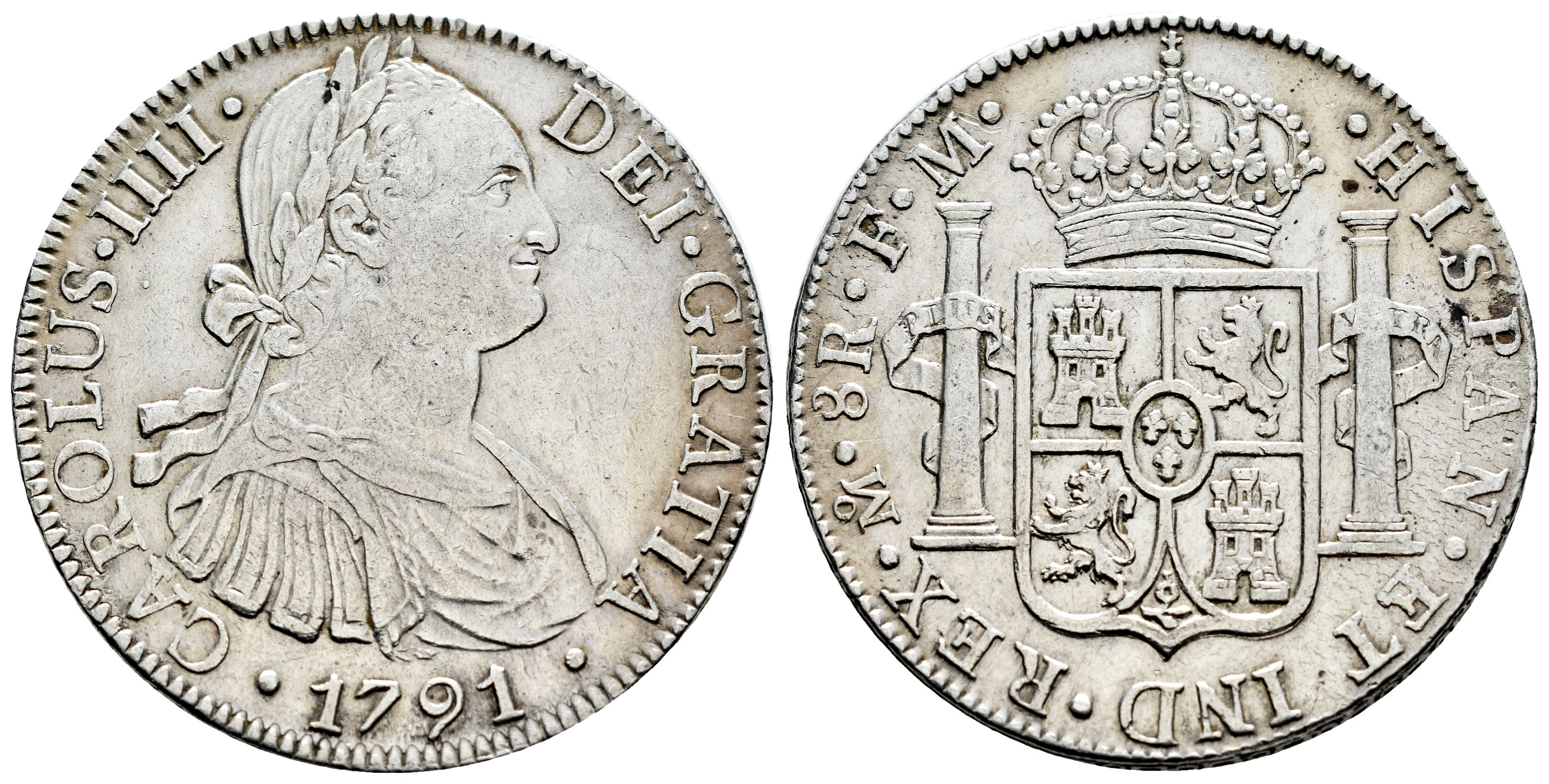 Charles IV (1788-1808). 8 reales. 1791. Mexico. FM. (Cal-953). Ag. 26,96 g. Slightly cleaned. VF. Est...100,00.