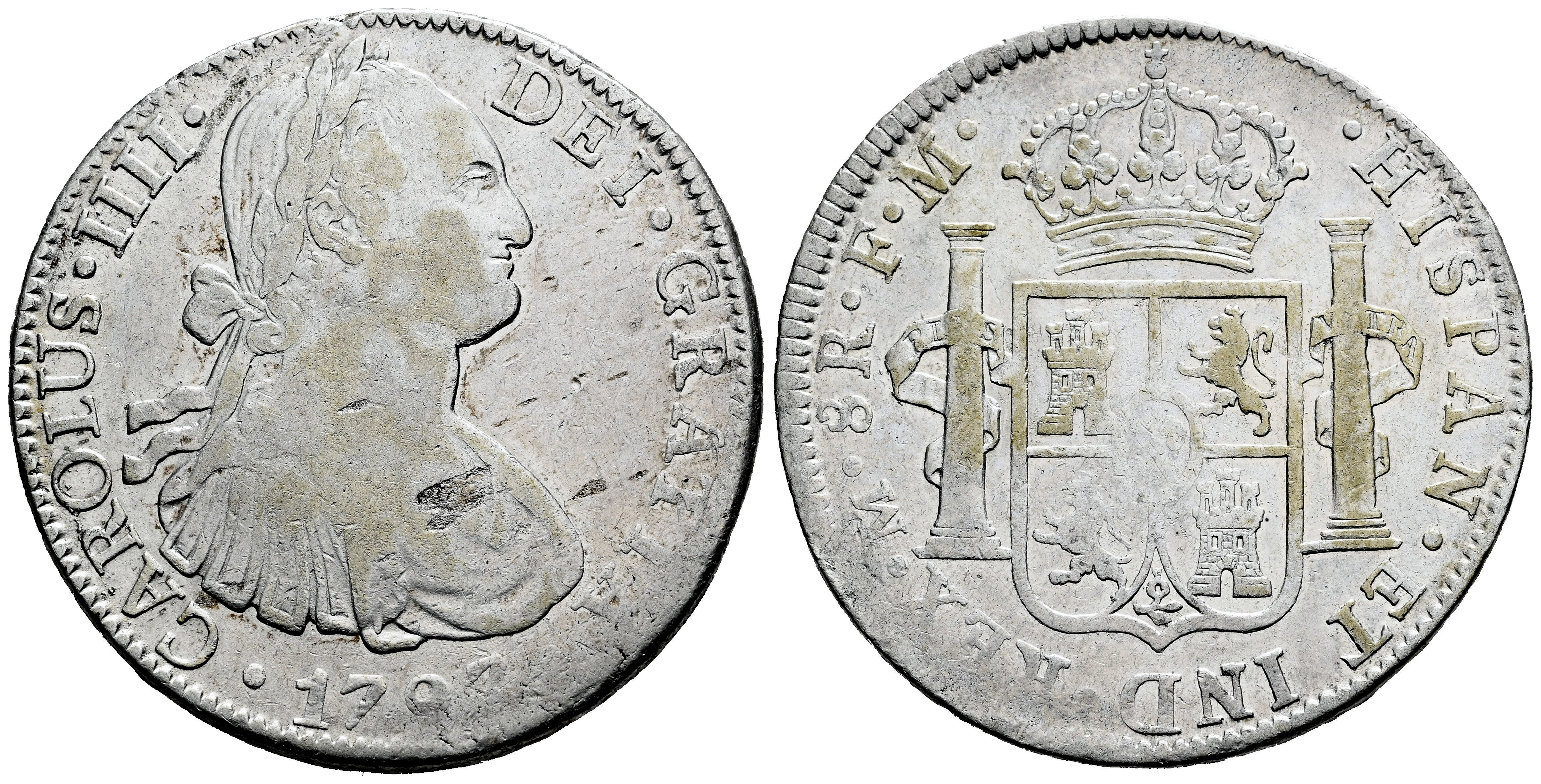 Charles IV (1788-1808). 8 reales. 1797. Mexico. FM. (Cal-960). Ag. 26,78 g. Almost VF. Est...110,00.