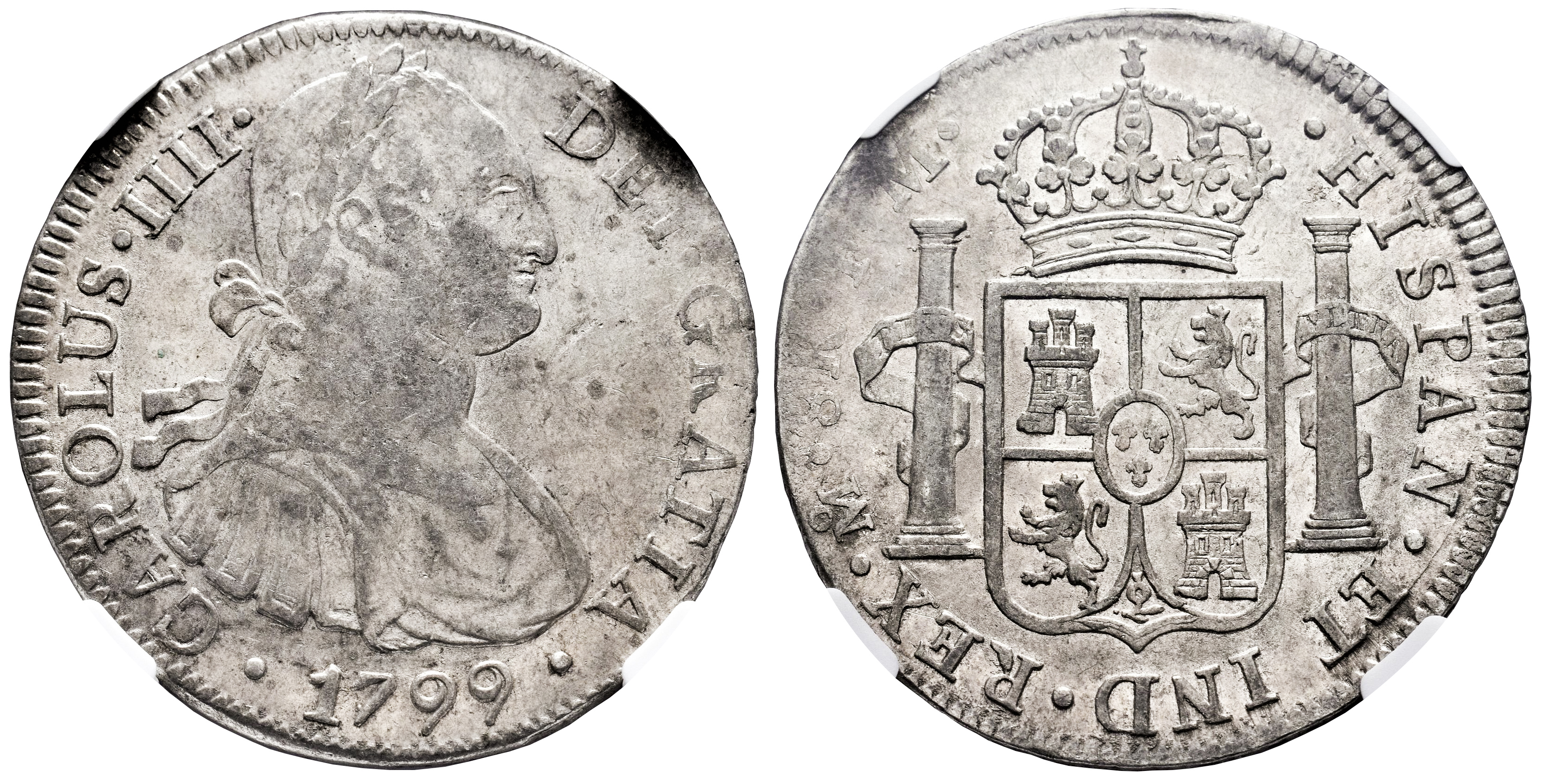 Charles IV (1788-1808). 8 reales. 1799. Mexico. FM. (Cal-963). Ag. Traces of luster. Faint scratches. Slabbed by NGC as AU 55. Est...200,00.