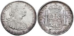 Charles IV (1788-1808). 8 reales. 1807. Mexico. TH. (Cal-988). Ag. 26,98 g. Traces of luster. Toned. Ex Tauler&Fau (28/11/2018 ), lot 443. XF/AU. Est...250,00.