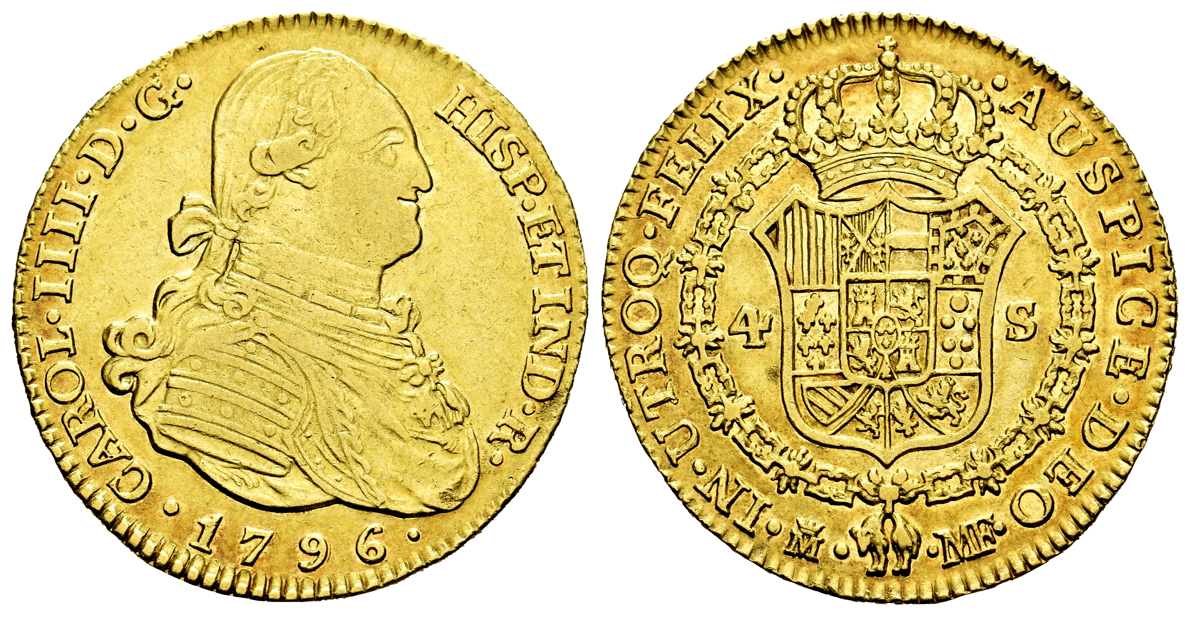 Charles IV (1788-1808). 4 escudos. 1796. Madrid. MF. (Cal-1479). Au. 13,41 g. Traces of luster. XF. Est...1500,00.