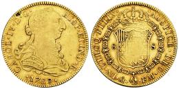 Charles IV (1788-1808). 8 escudos. 1789. Mexico. FM. (Cal-1627). (Cal onza-1015). Au. 27,02 g. Bust of Charles III and Ordinal IV. Weak strike. Nice color. Original luster. XF. Est...3500,00.