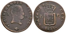Ferdinand VII (1808-1833). 3 maravedis. 1831. Pamplona. (Cal-52). (Ros-4.11.18). Ae. 5,30 g. Bare bust. Minor nick on edge. VF. Est...60,00.