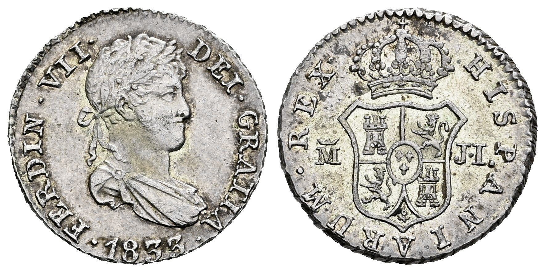Ferdinand VII (1808-1833). 1/2 real. 1833. Madrid. JI. (Cal-386). Ag. 1,43 g. Almost XF. Est...70,00.