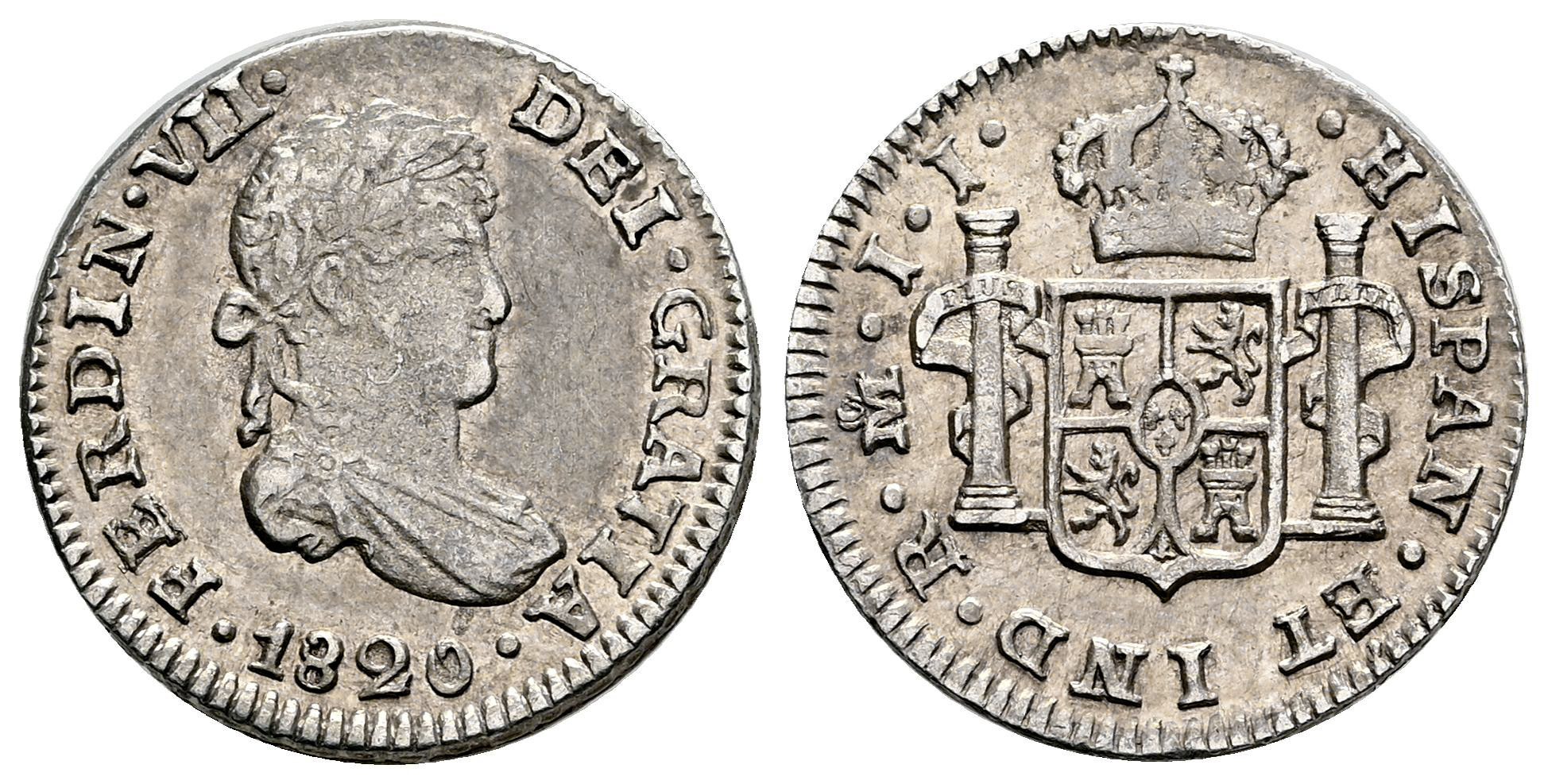Ferdinand VII (1808-1833). 1/2 real. 1820. Mexico. JJ. (Cal-411). Ag. 1,71 g. Traces of luster. Almost XF. Est...120,00.
