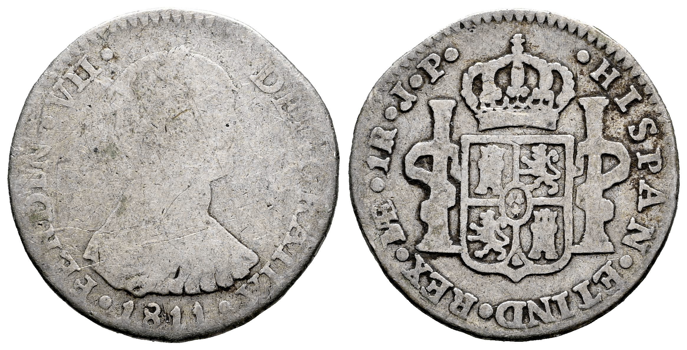 Ferdinand VII (1808-1833). 1 real. 1811. Lima. JP. (Cal-568). Ag. 3,16 g. Indigenous bust. Scarce. F/Choice F. Est...35,00.