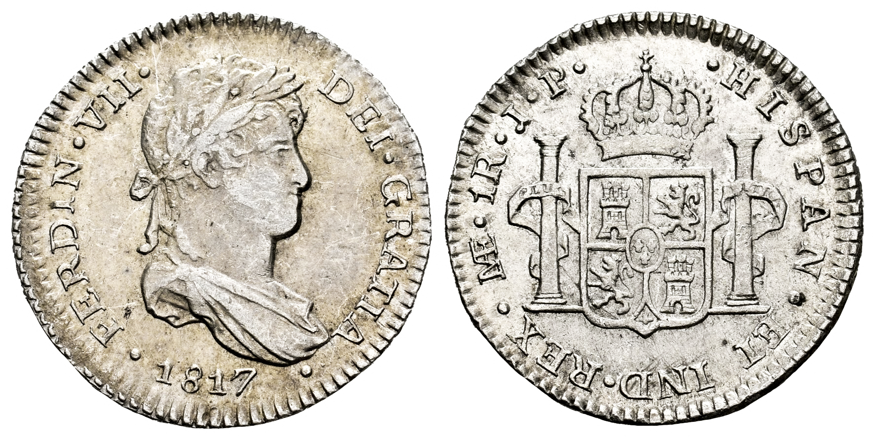 Ferdinand VII (1808-1833). 1 real. 1817. Lima. JP. (Cal-575). Ag. 3,33 g. Traces of luster. Choice VF. Est...90,00.