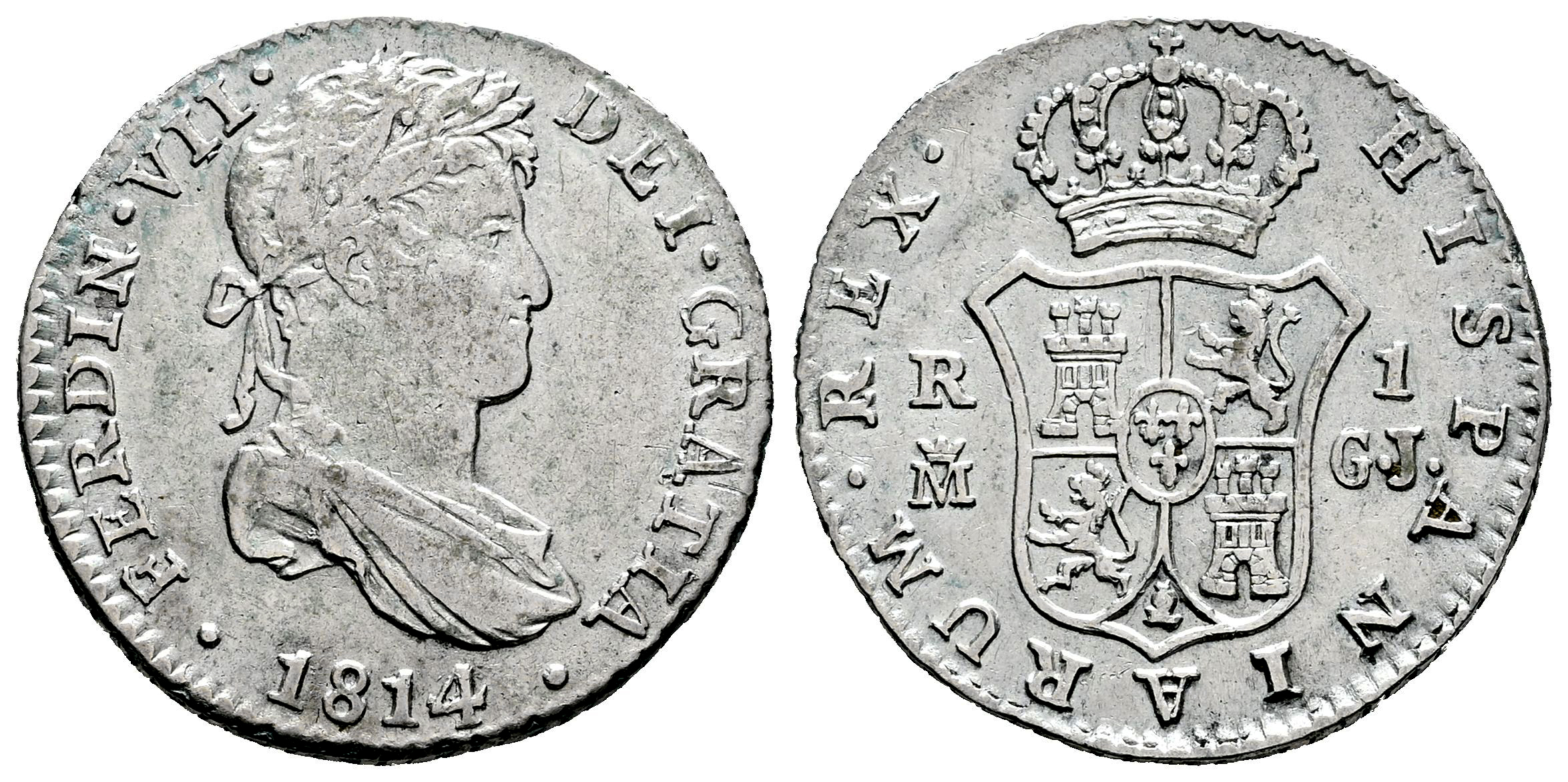 Ferdinand VII (1808-1833). 1 real. 1814. Madrid. GJ. (Cal-583). Ag. 2,82 g. Laureate bust. The number 4 of the date seems to be rectified on another number. Scarce. Choice VF. Est...150,00.