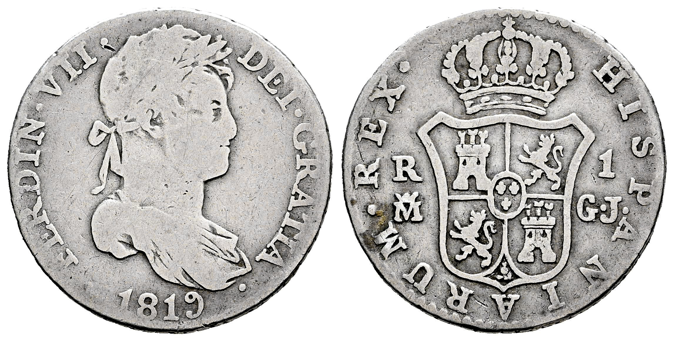Ferdinand VII (1808-1833). 1 real. 1819. Madrid. GJ. (Cal-588). Ag. 2,80 g. Rare. F. Est...90,00.